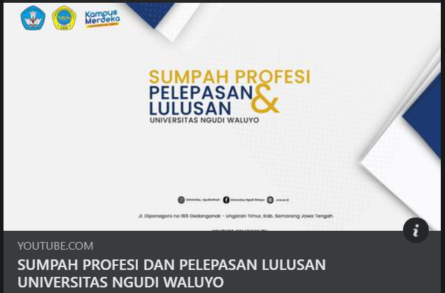 Wisuda XV Universitas Ngudi Waluyo Tahun 2024 15 Maret 2024Link youtube :youtube