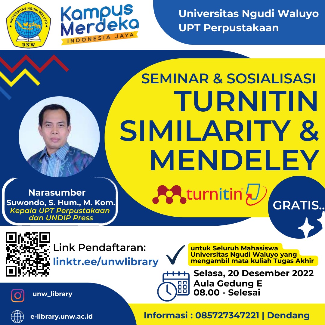 Seminar dan Sosialisasi Turnitin Similarity & Mendeley gratis bagi mahasiswa UNW yang sedang menempuh Tugas AKhir