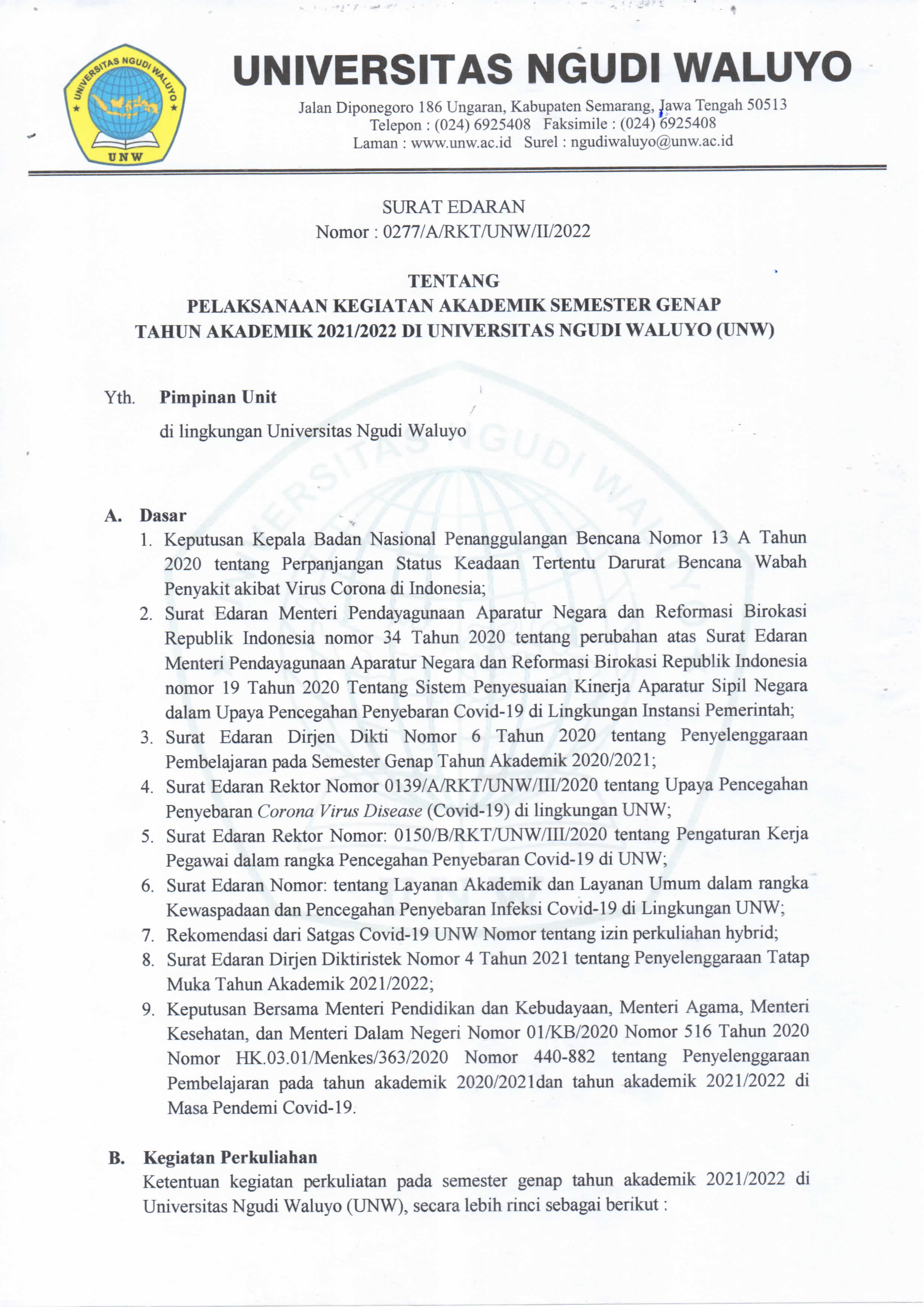 PENGUMUMAN PELAKSANAAN WISUDA XII PERIODE MARET 2022 UNIVERSITAS NGUDI WALUYO