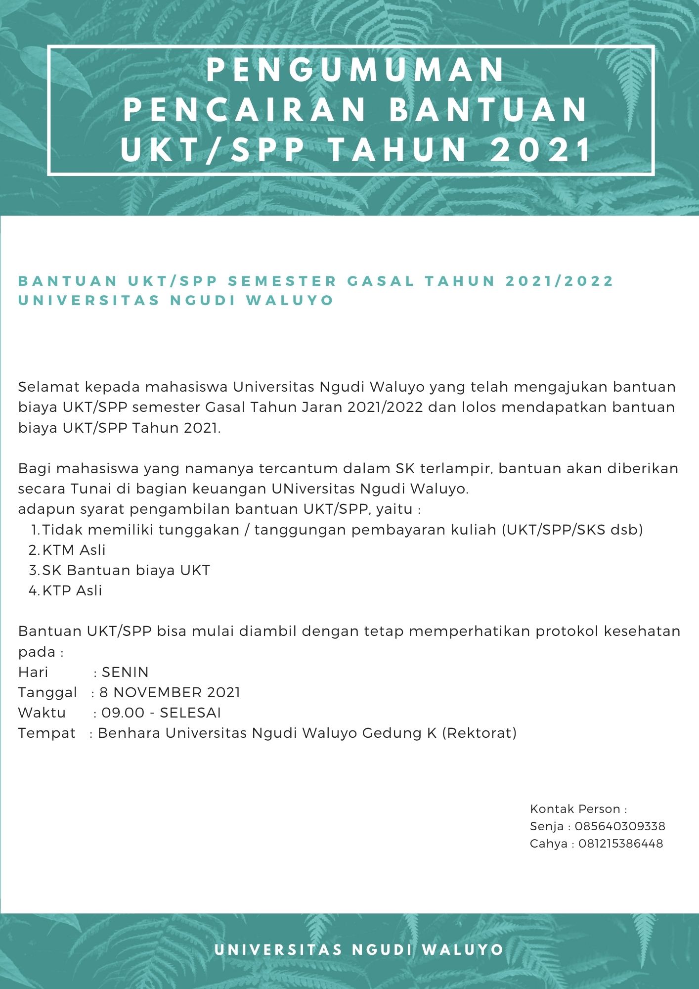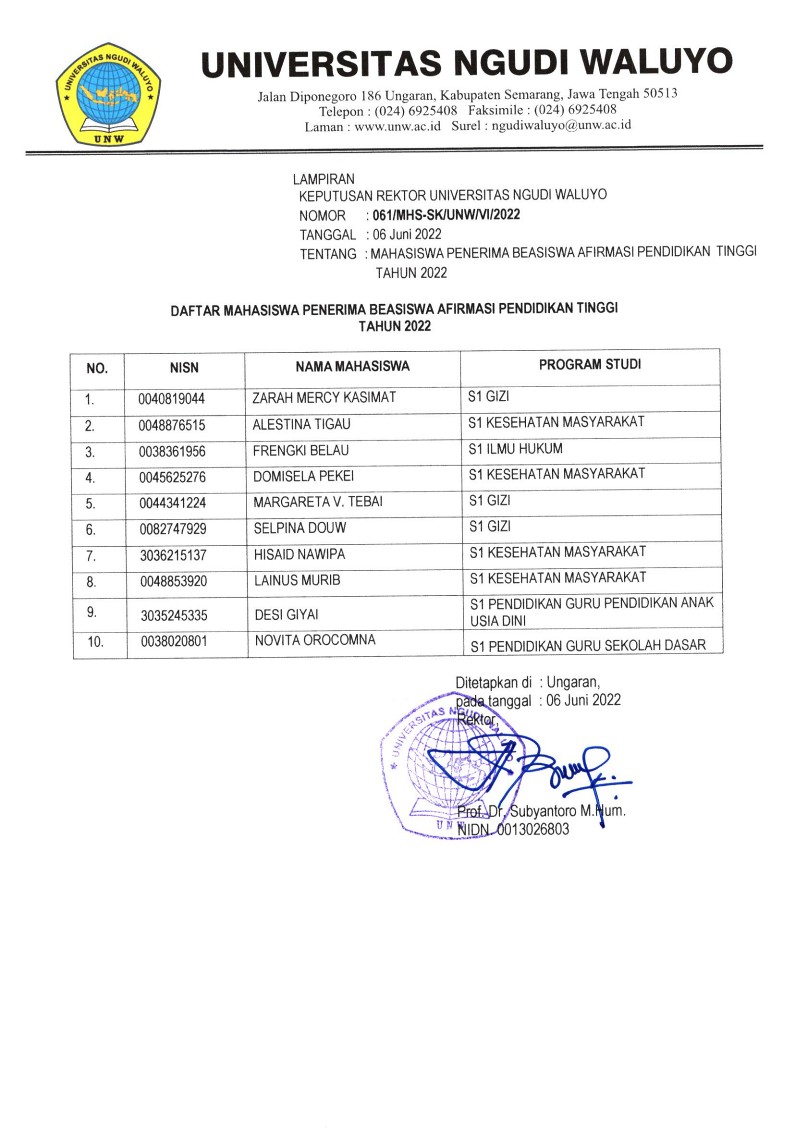 PEMBUKAAN BEASISWA BERPRESTASI UNIVERSITAS NGUDI WALUYO TAHUN 2022