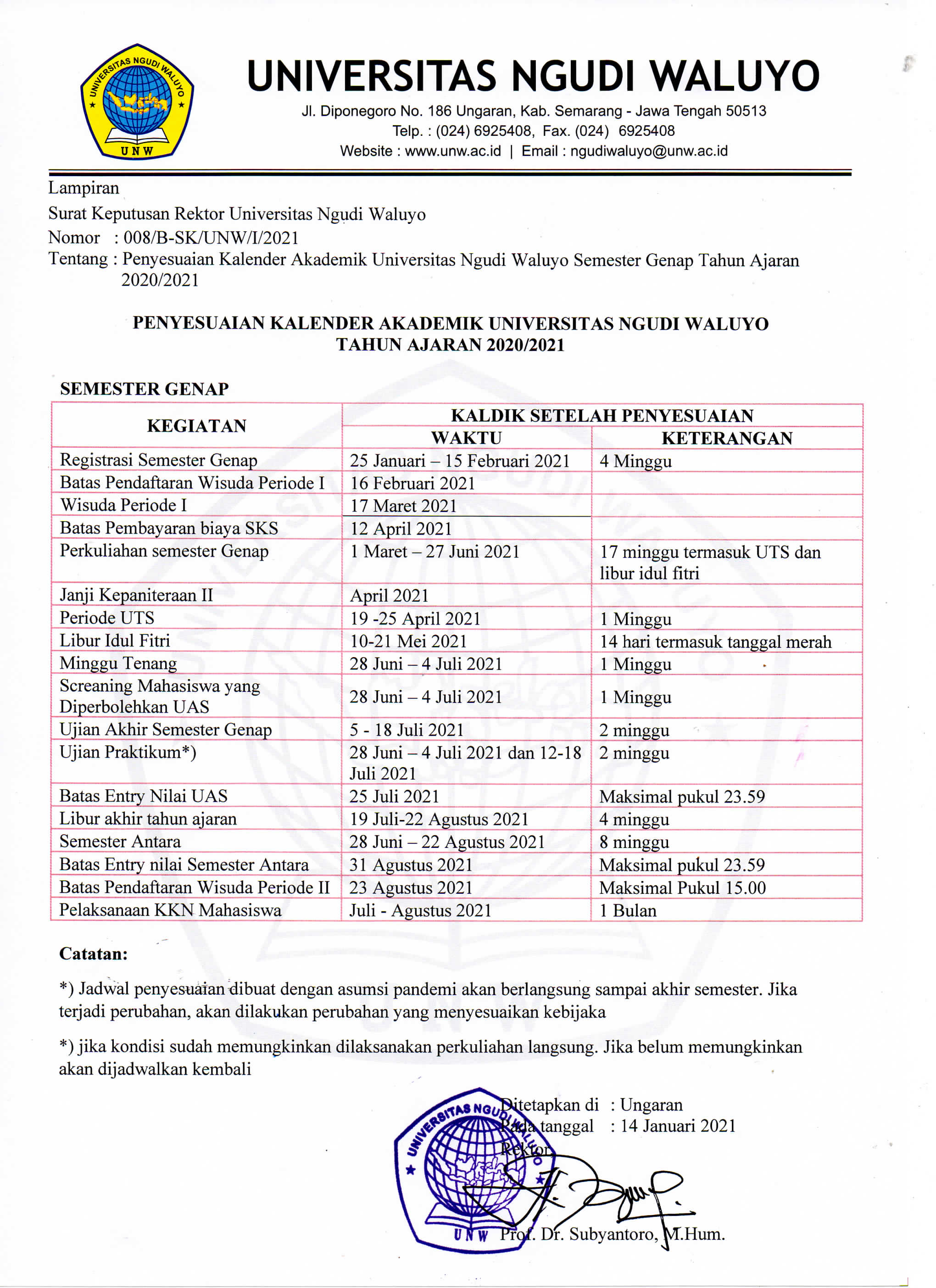 Berikut disampaikan informasi mengenai kalender UNW pada TA 2021/2022.