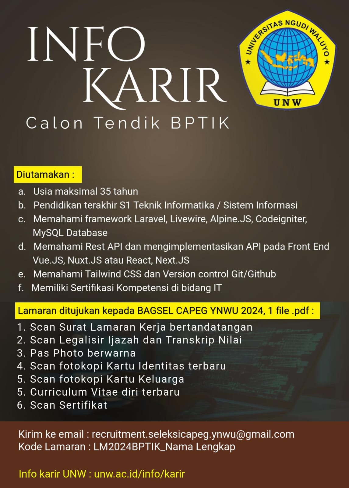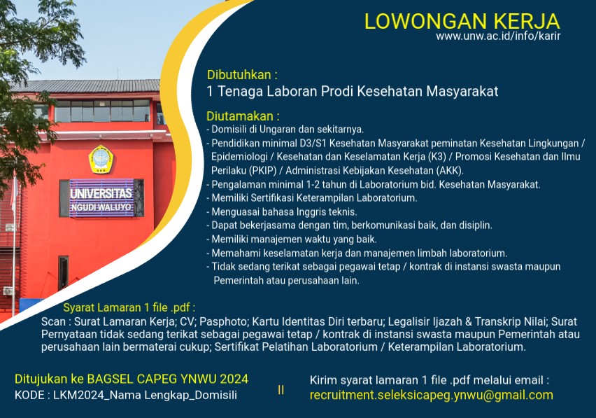 Lamaran paling lambat diterima melalui email tanggal 20 Februari 2025.