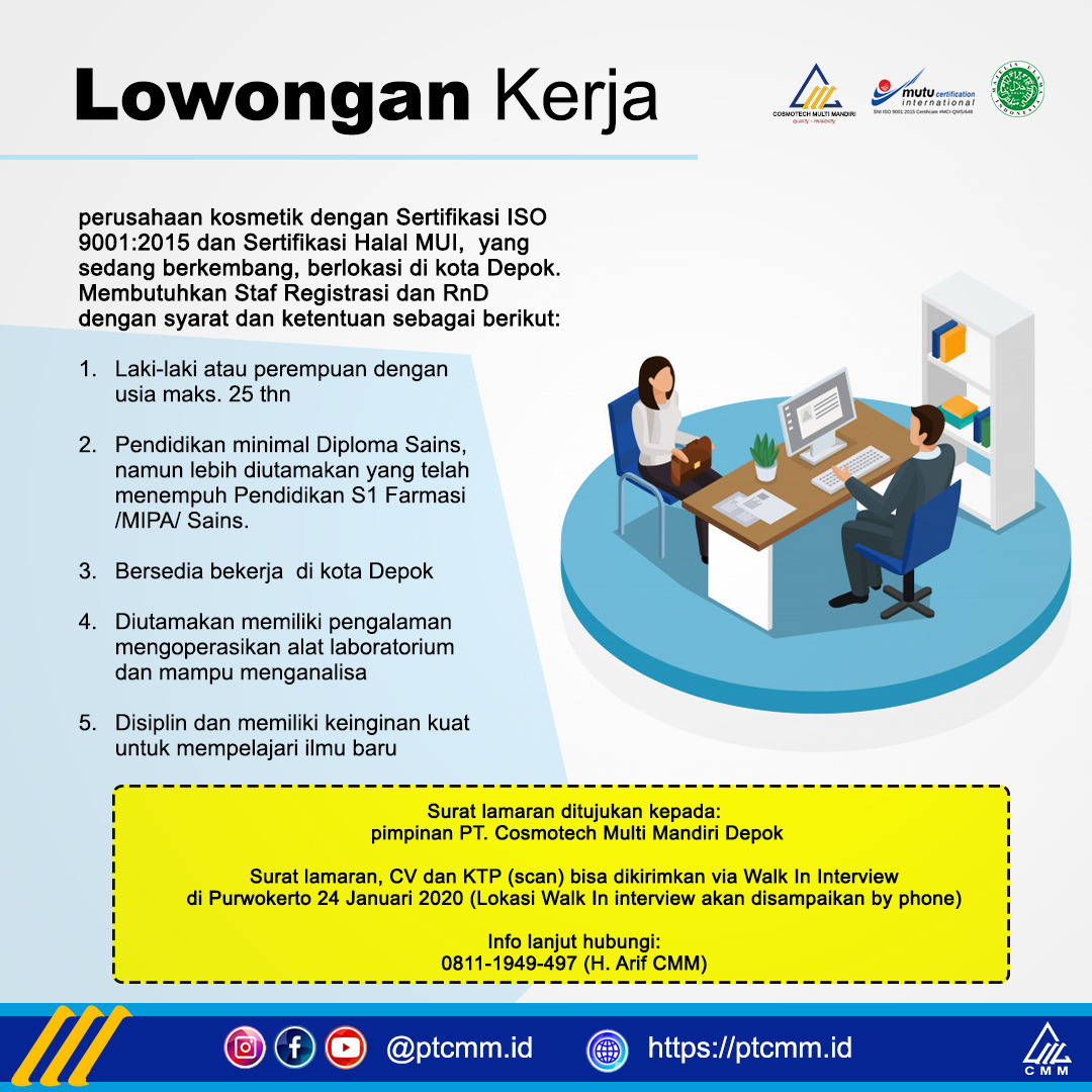 Mitra Keluarga adalah salah satu group Rumah Sakit terbesar di Indonesia yang yang tersebar di area Jabodetabek, Jawa Tengah dan Jawa Timur, dalam rangka pengembangan dan perluasan usaha mengundang para professional untuk bergabung pada penempatan sbb :Mitra Keluarga Depok :1. Dokter Spesialis Obstetri & Ginekologi2. Dokter Spesialis Anak3. Dokter Spesialis Bedah Syaraf4. Kepala Bagian Marketing5. Staf Perawat Rawat Jalan & Rawat Inap6. Staf Apoteker7. Staf Tenaga Teknis KefarmasianMitra Keluarga Cibubur :1. Marketing Manager, diutamakan pendidikan Dokter2. Staf Perawat3. Staf Radiographer4. Staf Apoteker5. Staf Tenaga Teknis Kefarmasian6. Staf Accounting7. Staf MarketingMitra Keluarga Bintaro :1. Dokter Umum2. Staf Perawat Rawat Jalan & Rawat Inap3. Staf Perawat Hemodialisa4. Staf Perawat ICU5. Staf Penata Anestesi6. Apoteker7. Staf Front LinerKirimkan CV dalam bentuk pdf lengkap dengan foto terbaruKirimkan melalui link berikut ini :http://bit.ly/mikareg3_jan20Atau melalui…
