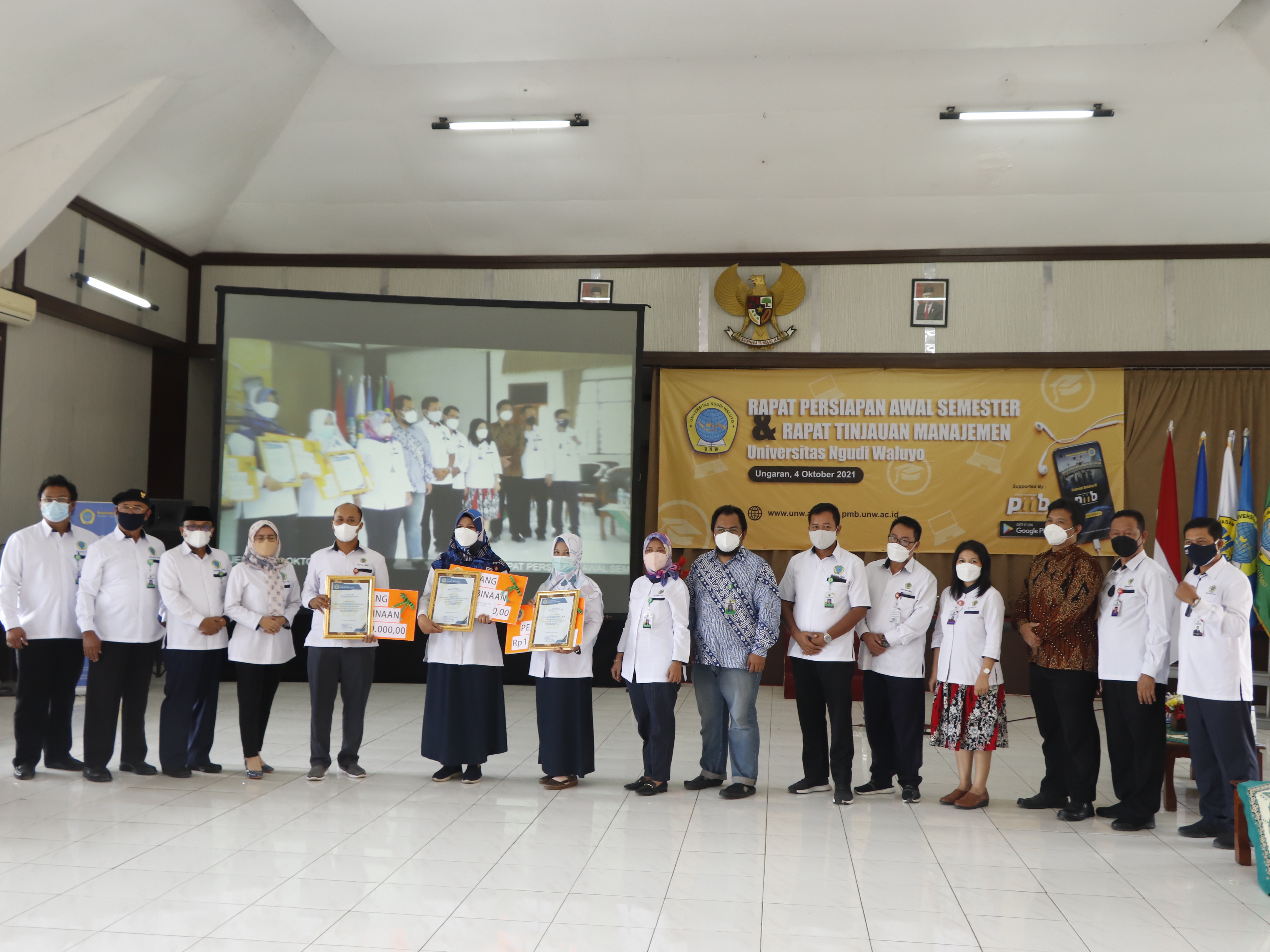 Rapat Persiapan Awal Semester dan Tinjauan Manejemen 2021, yang diselenggarakan di Aula Gedung E, Senin 4 Oktober 2021. Acara tersebut dihadiri oleh para pejabat Yayasan dan pejabat UNW, serta disiarkan secara live streaming melalui Zoom Meeting yang diikuti oleh seluruh civitas akademika UNW. Pada rapat tersebut, Ka. BPPMB melaporkan hasil PMB 2021/2022, juga peluncuran Grand Launching Aplikasi Playstore BP-PMB yang dipaparkan oleh Ka. BPTIK.Pada kegiatan tersebut juga Ka. BPM melaporkan hasil AMI yang sudah dilaksanakan. Dari hasil AMI tersebut, BPM memberikan penghargaan kepada Fakultas, Program Studi, dan Bagian yang terbaik.Fakultas Ekonomi, Hukum, dan Humaniora mendapatkan penghargaan sebagai Fakultas terbaik; S1 Keperawatan sebagai Prodi terbaik; dan Bagian Rumah Tangga sebagai Biro/Unit/Bagian terbaik.