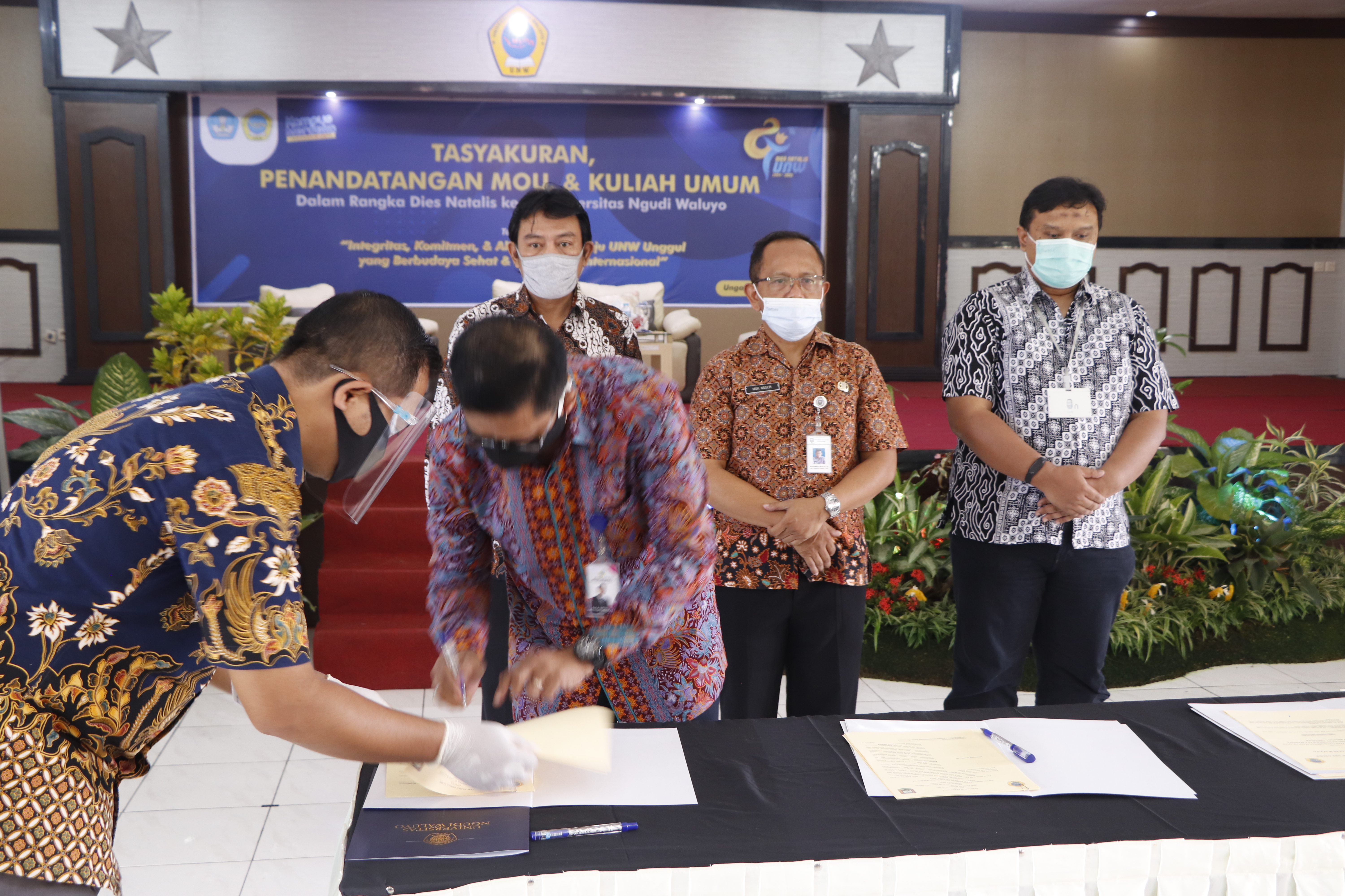 Universitas Ngudi Waluyo menjalin kerjasama dengan Kabupaten Belu, NTT, pada hari Senin, 7 Juni 2021. kegiatan tersebut berlangsung pada pagi hari di kantor Bupati Belu.Turut hadir dalam kegiatan tersebut adalah Prof. Dr. Subyantoro, M.Hum, selaku rektor Universitas Ngudi Waluyo; Bapak Adi Purwanto, S.E., M.M, selaku Kepala BAUK Universitas Ngudi Waluyo, dan Bapak Ahmad Kholid S.Kep., Ns., M.Kes, selaku Kepala PMB Universitas Ngudi Waluyo . Turut hadir pula tuan rumah dalam kegiatan tersebut adalah Bapak dr. Agustinus Taolin, Sp.PD-KGEH, FINASIM, selaku Bupati Belu dan Ibu Theresia M.B. Saik, SKM, M.Kes, selaku Kepala Dinas Kesehatan Kabupaten Belu.Kunjungan tersebut mendapatkan antusias dari Bupati Belu dengan kedatangan dari Universitas Ngudi Waluyo. Menurutnya, perguruan tinggi merupakan lembaga yang sangat strategis dalam mendorong percepatan pembangunan suatu daerah dan masyarakat.Kunjungan tersebut merupakan penjajakan sinerginitas Universitas Ngudi Waluyo dengan pemerintah daerah…