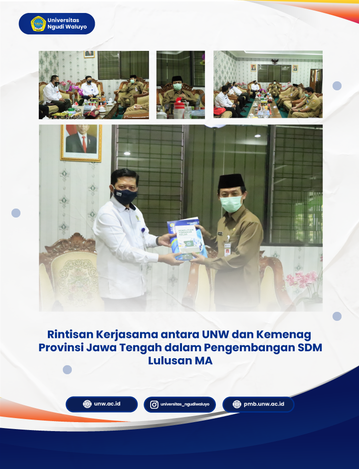 Tanggal 25 Januari 2021 Bapak. Rektor Universitas Ngudi Waluyo, Wakil Rektor I Bidang Akademik dan Tim HR-BP Kabupaten melakukan silaturohmi ke Kantor Kementerian Agama Wilayah Jawa Tengah, yang di terima langsung oleh Bpk. Kepala Kantor Kementerian Agama Kanwil Jawa Tengah dan Bpk Kepala Bidang MA, dalam rangka pengembangan SDM bagi lulusan Madrasah Aliyah di Jawa Tengah, Pertemuan itu mengangkat konsep kerja Ok kuliah Yes (KOKY) yang bekerja sama juga dengan Ketua HR-BP Kabupaten semarang yang diwakili oleh Bpk Wahyu sebagai wakil HR-BP Kab.Semarang.Bapak Kepala Kemenag Propinsi Jawa Tengah menyambut baik kerjasama tersebut, bahkan Bpk Kakanwil mengatakan bawah Prestasi itu adalah dari mimpi dan di dukung oleh kompetensi, maka dengan adanya program KoKy yaitu Kerja sambil kuliah yang difasilitasi untuk kompetensi mininal yang dibutuhkan industri oleh HR-BP dan kuliah yang difasilitasi oleh UNW.