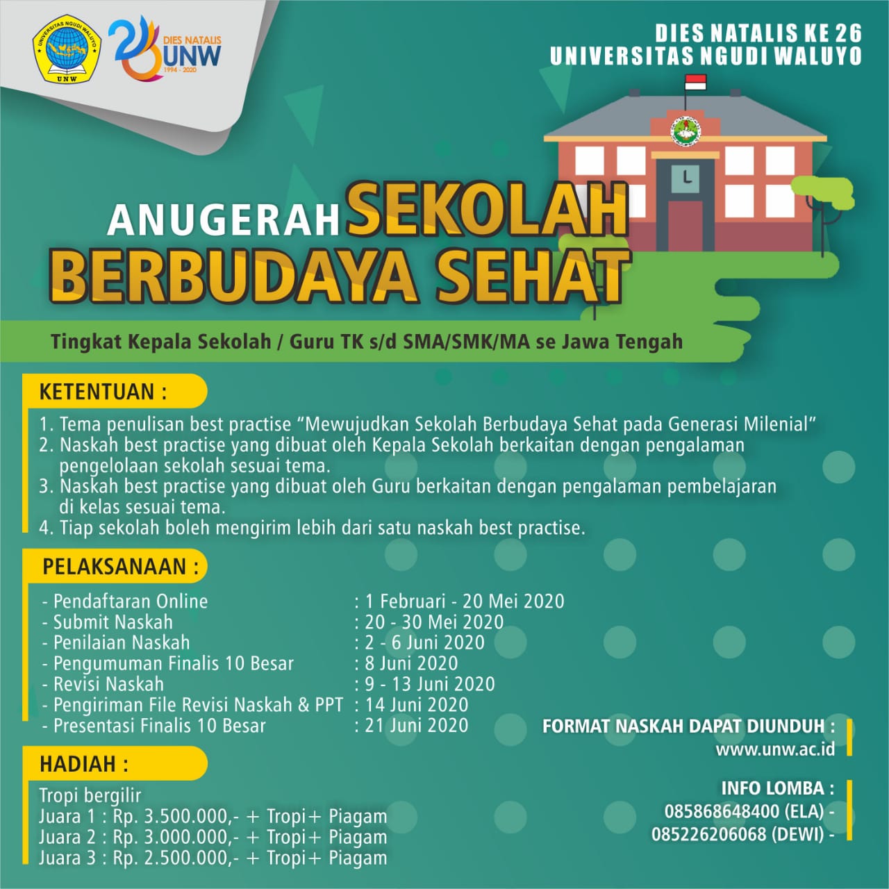 Mengaplikasikan kebijakan Merdeka Belajar : Kampus Merdeka yang digagas oleh Kemendikbud, Universitas Ngudi Waluyo (UNW) saat ini telah merancang program 5-2-1. Program tersebut bermakna 5 semester perkuliahan di dalam kampus, dua semester di luar progdi, dan satu semester di dunia industri.“Kami saat ini telah berupaya menggandeng dunia usaha dan dunia industri dalam rangka mendukung program pemerintah. Besuk (14/3), UNW akan menyelenggarakan job fair sekaligus melakukan MoU dengan 49 perusahaan dan 2 lembaga HRD.”Pernyataan rektor UNW Prof. Dr. Subyantoro, M.Hum tersebut diungkapkan pada saat penyelenggaraan acara wisuda periode VIII dan Sumpah Profesi para lulusan institusinya yang berlangsung di hotel Wujil (11/3). Jumlah wisudawan sebanyak 220 lulusan, terdiri 163 Sarjana, 57 Profesi.Dijelaskan oleh rektor, pada saat acara job fair nanti akan ditawarkan sebanyak 5886 lowongan pekerjaan. Untuk itu, UNW mengundang alumni untuk hadir. “Mengenai sebanyak 49 perusahaan yang…