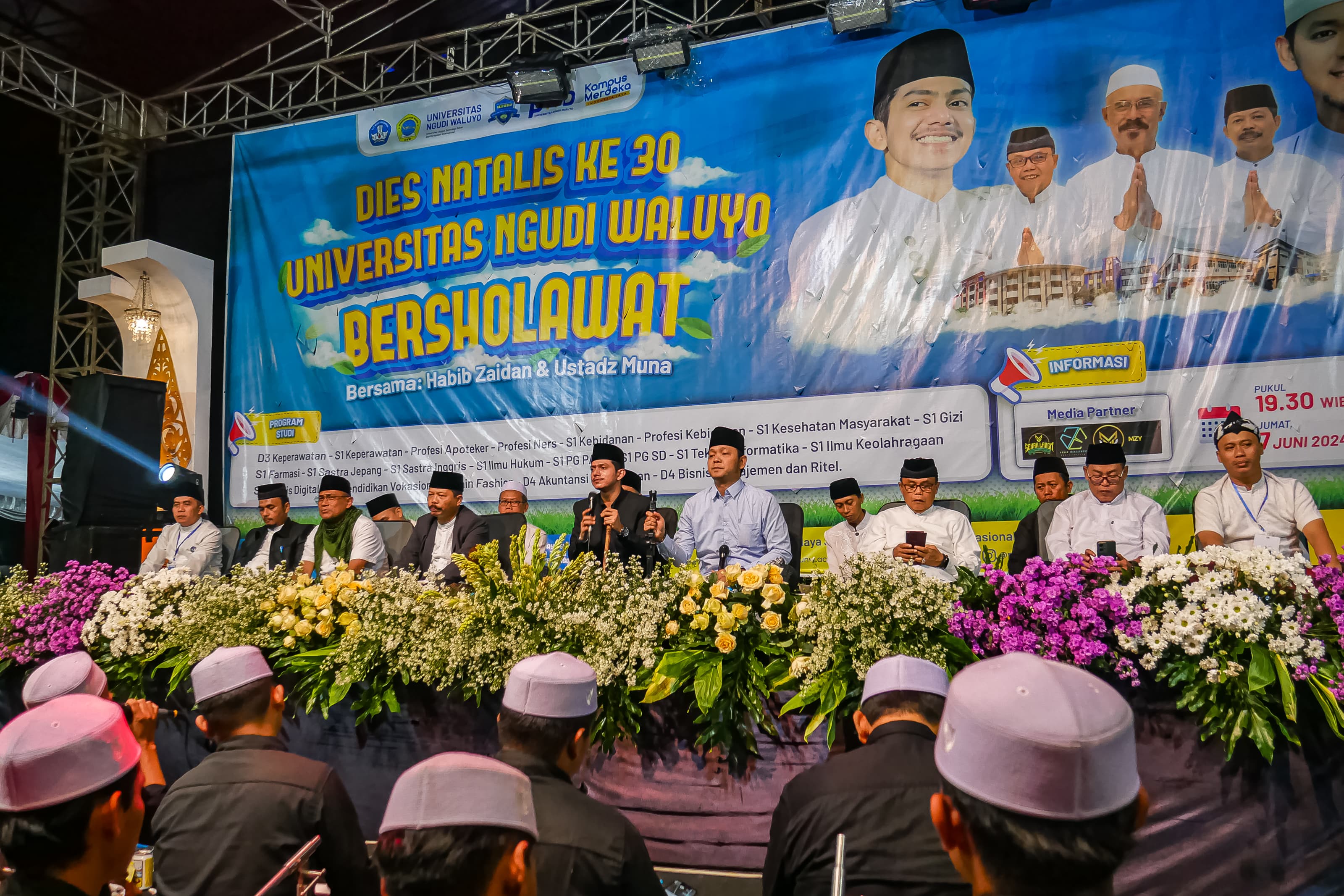 Ungaran - Sabtu malam, 8 Juni 2024, halaman E Universitas Ngudi Waluyo (UNW) berubah menjadi lautan manusia saat UNW menggelar acara akbar bertajuk "UNW Bersholawat". Acara ini dipimpin oleh Habib Zaidan yang dengan kharismanya berhasil memikat hati sekitar lebih dari 5.000 jamaah yang hadir. Jamaah yang hadir bukan hanya mahasiswa dan mahasiswi UNW, tetapi juga masyarakat umum yang turut merasakan kehangatan dan kekhidmatan acara.Dari awal acara, ketika lantunan sholawat mulai dikumandangkan, suasana langsung dipenuhi oleh suara serempak para mahasiswa dan mahasiswi yang turut melantunkan sholawat bersama-sama. Gema sholawat pun menggema, menciptakan suasana religius yang menggetarkan hati, menyelimuti seluruh area kampus dan bahkan hingga ke ruangan-ruangan gedung akademika UNW.Kegiatan ini tidak hanya dihadiri oleh mahasiswa dan masyarakat umum, tetapi juga oleh sejumlah tokoh penting. Hadir di antaranya Bupati Semarang H. Ngesti Nugraha, Rektor UNW Prof. Dr. Subyantoro, M.Hum, Ketua…