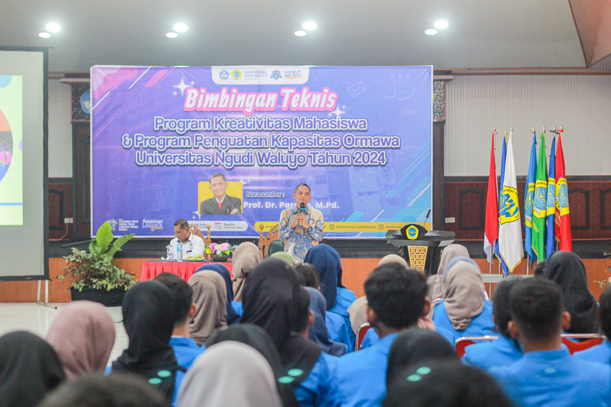 Perayaan Dies Natalis ke-30 Universitas Ngudi Waluyo (UNW) menjadi momen yang penuh semangat dengan rangkaian kegiatan senam sehat dan turnamen volly yang digelar secara meriah. Pada hari yang cerah, halaman gedung rektorat UNW dipenuhi dengan energi positif saat ribuan civitas akademika berkumpul untuk berpartisipasi dalam senam sehat yang diadakan sebagai bagian dari perayaan tersebut. Acara dimulai dengan pemasangan PIN UNW kepada tenaga kependidikan dan dosen senior oleh Rektor, sebagai tanda penghargaan atas dedikasi mereka dalam mengembangkan universitas. Suasana semakin terasa istimewa dengan pelepasan 6 burung oleh Rektor, Ketua Dewan Pembina, dan Ketua Umum Dewan Pengurusan Yayasan Ngudi Waluyo Ungaran.Setelah selesai senam, peserta senam menikmati susu segar dan hidangan sehat sebagai bagian dari promosi gaya hidup sehat yang dianut UNW. Tidak lupa, doorprize turut dibagikan untuk menambah keseruan acara tersebut.Selanjutnya, sorotan beralih ke lapangan volly gedung N Farmasi…